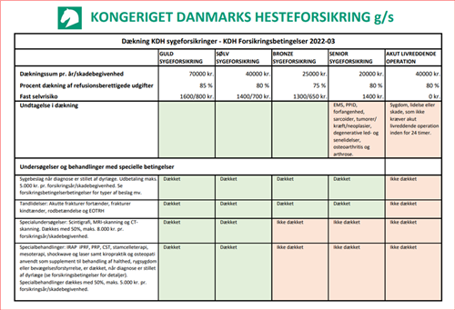 Dækningsoversigten giver dig et hurtigt overblik over hvilken sygeforsikring der passer til dig og din hest