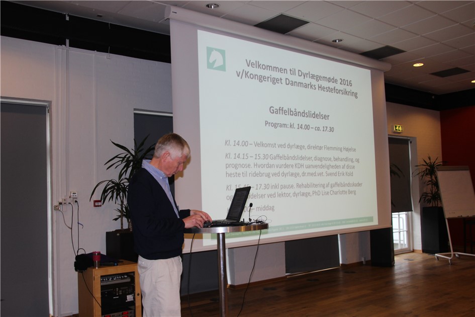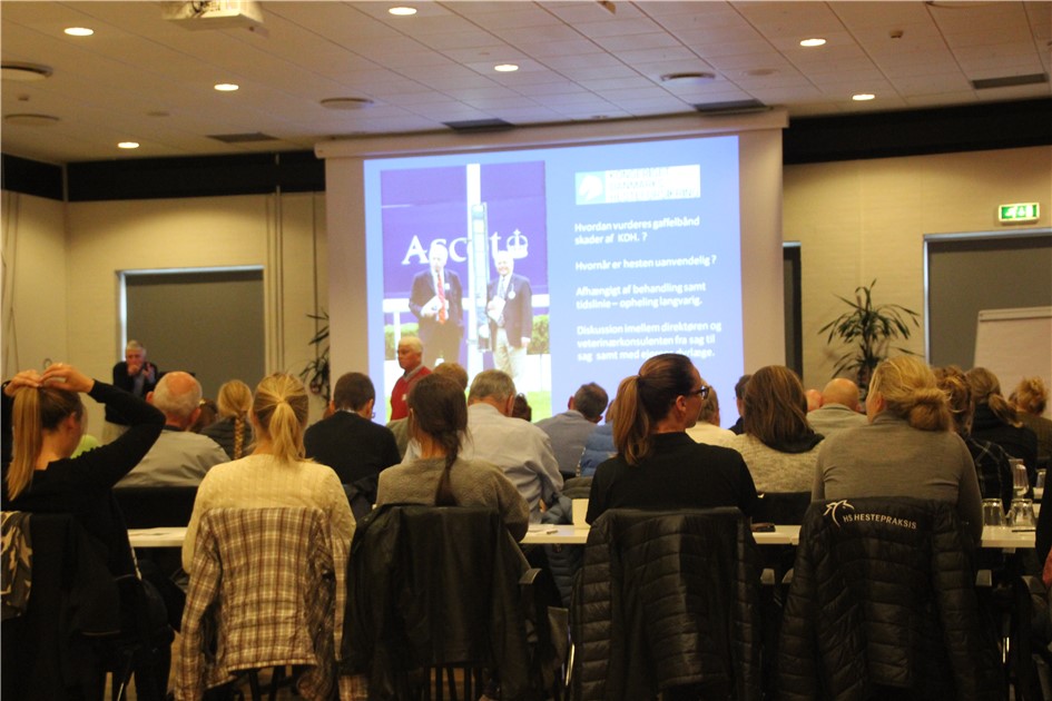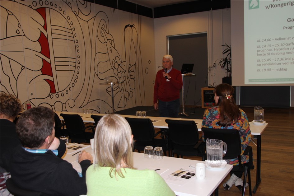 Emne: Gaffelbåndsskader, diagnose, behandling og prognose ved Svend Kold, DVM, samt rehabilitering af senelidelser især gaffelbåndsskader ved lektor Lise Berg